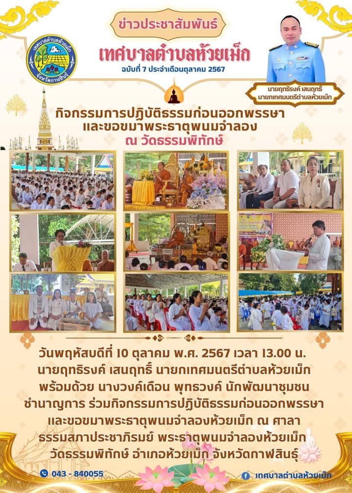 ร่วมกิจกรรมการปฏิบัติธรรมก่อนออกพรรษาและขอขมาพระธา...