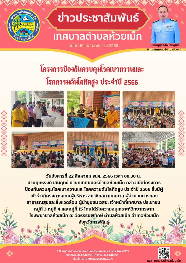เทศบาลตำบลห้วยเม็ก อำเภอห้วยเม็ก จังหวัดกาฬสินธุ์ : www.tbhuaimek.go.th
